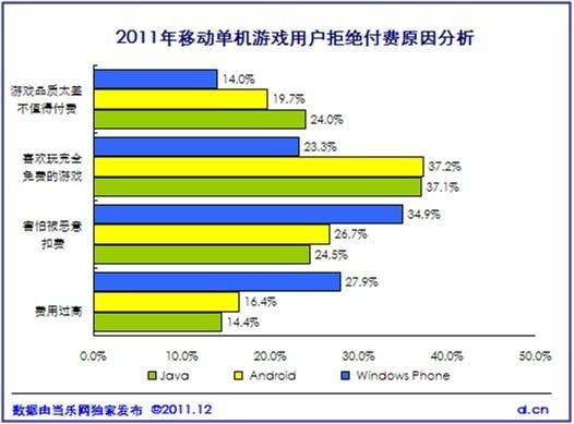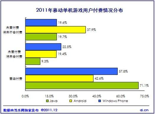 《中国2011年度移动游戏产业报告》解析(八)Android单机游戏用户付费意愿最低