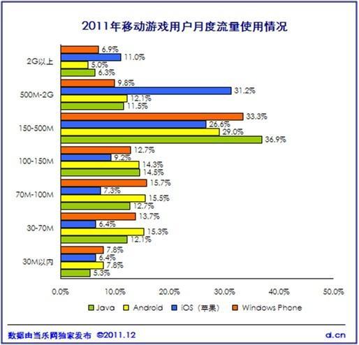 《中国2011年度移动游戏产业报告》解析(四)IOS移动游戏用户月度流量使用需求最大