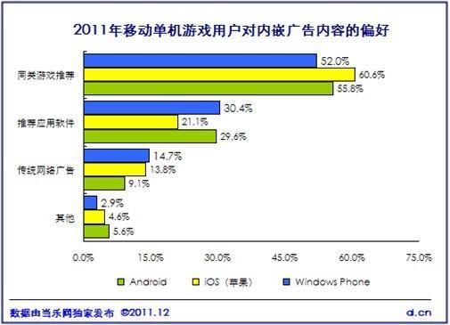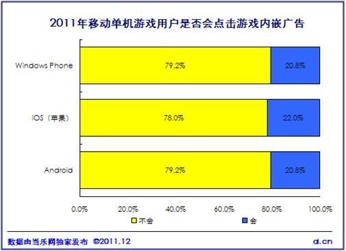《中国2011年度移动游戏产业报告》解析(十二)移动游戏用户对游戏内嵌广告的认可度偏低