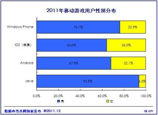 《中国2011年度移动游戏产业报告》解析(一)智能移动平台女性用户占比最高达36%