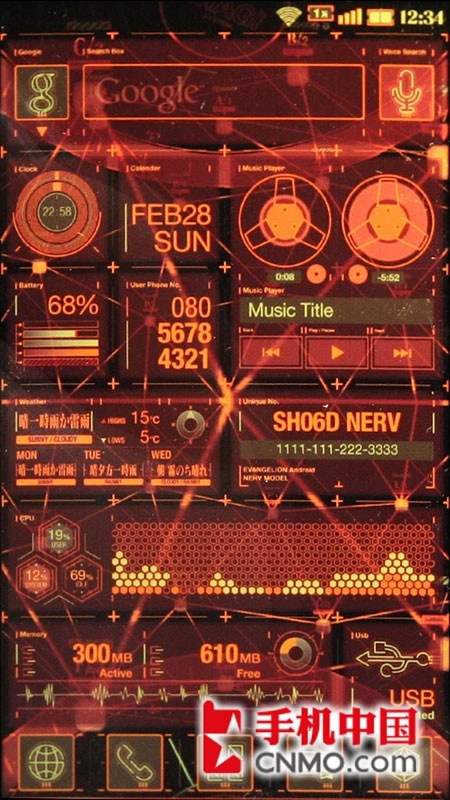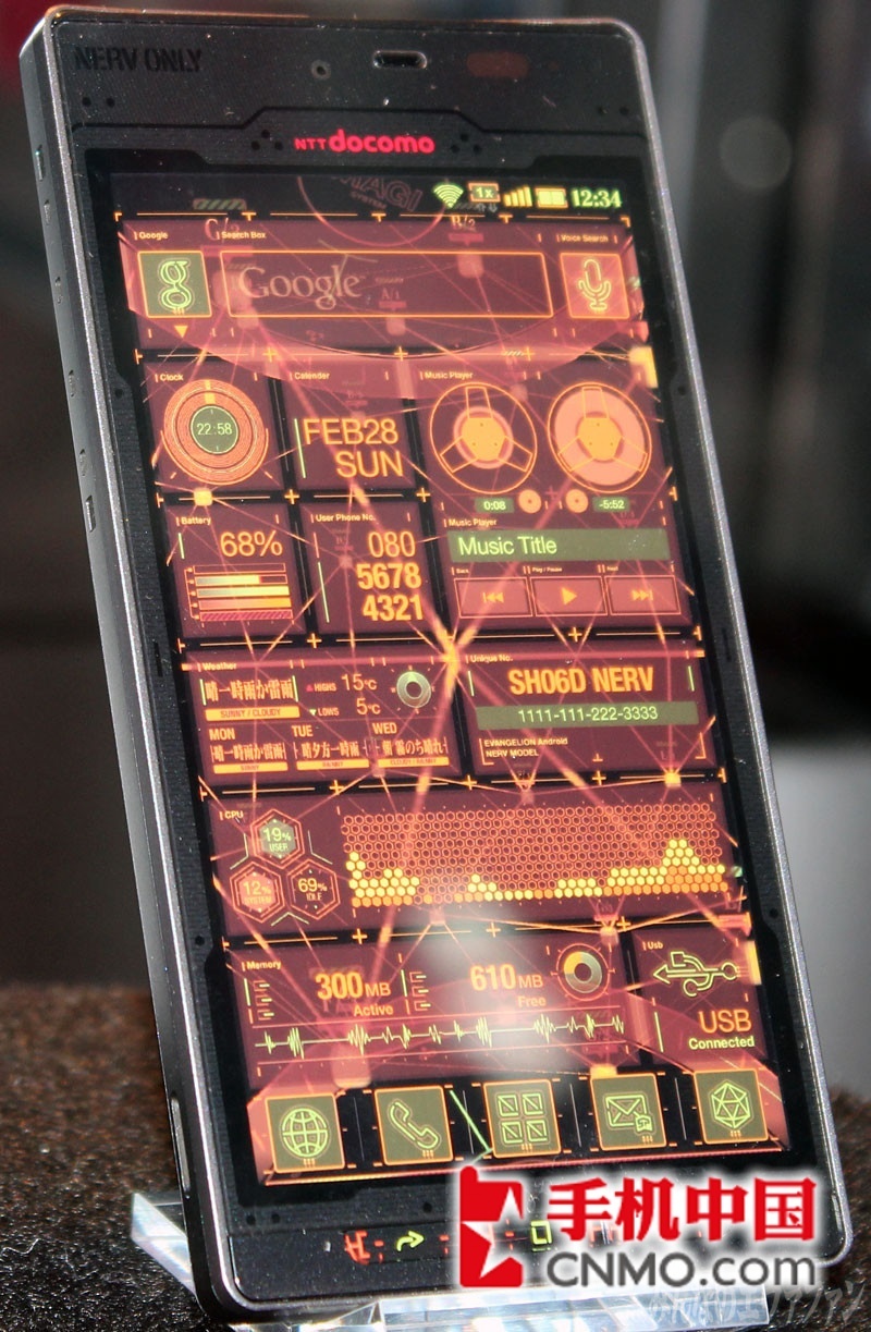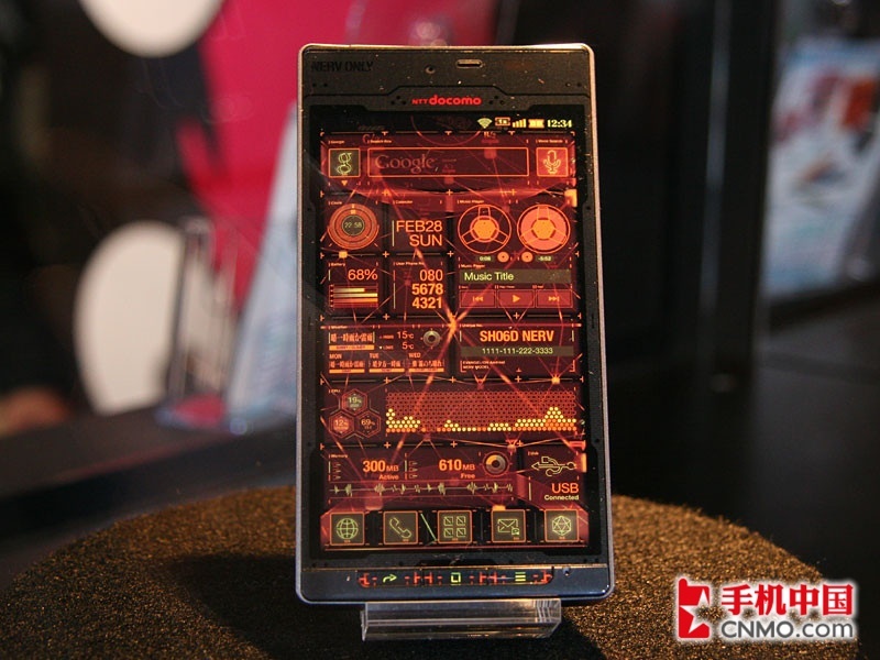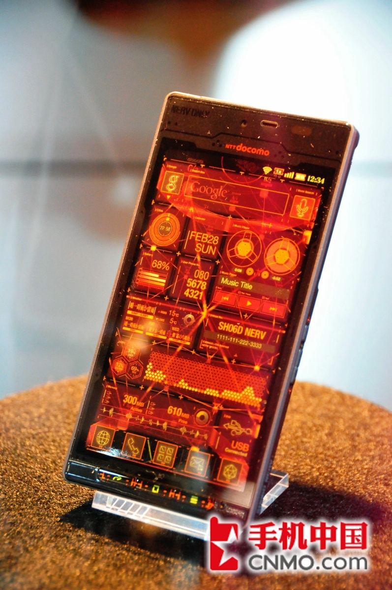 三年前,福音战士新剧场版与日本运营商NTT DOCOMO曾经共同打造过一款EVA手机——「SH-06A NERV」,而今夏,将发布与福音战士新剧场版:Q合作打造的智能手机第2弹——NERV特别仕様智能手机「SH-06D NERV」夏普SH-06D NERV限量版具备IPX5/IPX7防水防尘性能,配备4.5英寸720P电容式触摸屏,而且支持裸眼3D显示,搭载安卓2.3操作系统,采用1.2GHz主频TI OMAP4460双核处理器,运行内存1GB,内建800W像素摄像头和前置视频镜头,支持1080P摄录和回放,其它功能包括Wi-Fi、蓝牙、DLNA、 NFC、 microSD卡扩展等。