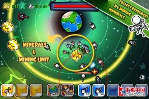 卡通防御:星际战争不同于一般塔防游戏,不仅仅把战场搬到了太空,同时还具备了很多即使战略要素,游戏中,你首先要派农民进行采矿,同时还要进行布防,由于战场在太空中,所以你的敌人从360°各个方向袭来,布防起来也相当考验技巧。