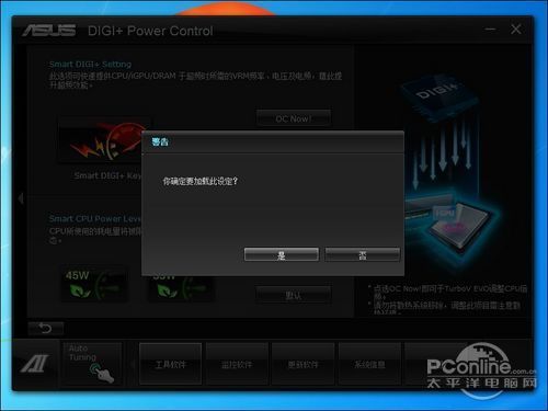 我们点击OC Now!按键,软件出现了一个加载提示,我们按“是”,即可完成相关的超频供电优化设定。
