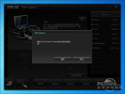 风扇达人2相对一代最明显的改进在于能够智能地判断每个风扇的转速信息,更量身订做,为此软件一打开时就会提示用户进行风扇调整校正,获取连接到主板上的各风扇的转速信息。