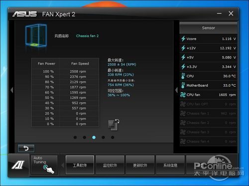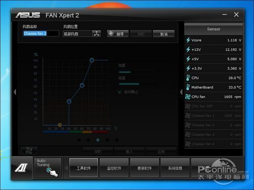 点评:风扇达人2提供了前所未有的“量身订做”体验,能更智能地分析风扇的信息并提供简单易用,而且有效准确的转速控制,静音还是高性能都尽在掌握,技术上可以说是业界的一个新高度。
