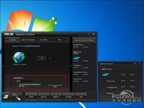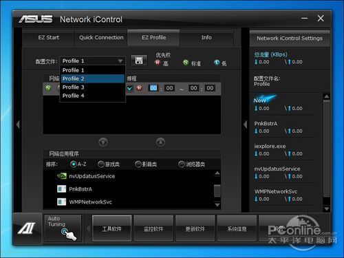 留意主板软 件技术的用户可能都有发现,近年很多厂商都在设计一些网络控制软件,对于用户来说,这些软件的确有一点用,但是很多时候这些软件设置不够贴心。这次华硕给 我们带来了自家的网络智能管理中心软件,初步目测有惊喜:支持配置文件多种不同优先级设置,而且能根据当前使用程序自动设置最高的网络优先权。