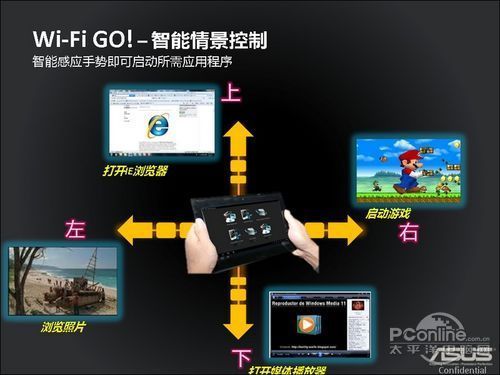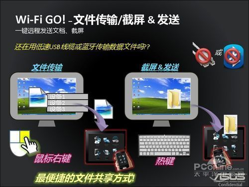 点评:华硕的Wi-Fi GO!乐趣无线的确是款新颖而有趣的功能,能够很好地优化PC与移动设备之间的配合,顺应了当前智能手机和平板电脑越来越流行的潮流,其实用用途可以说是千变万化,关键要看用户有没有足够的想象力。