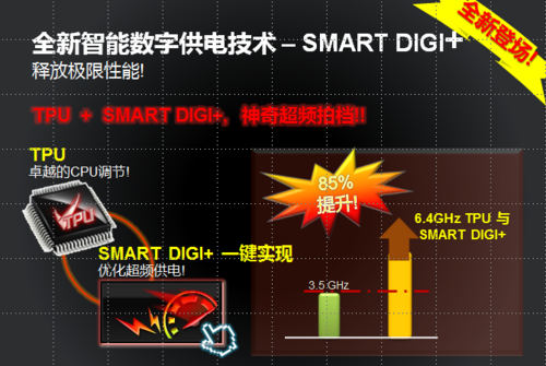 除了EPU,主板还具备TPU芯片,更别一键实现自动调整超频功能,轻松释放平台的潜能而不怕伤到硬件。
