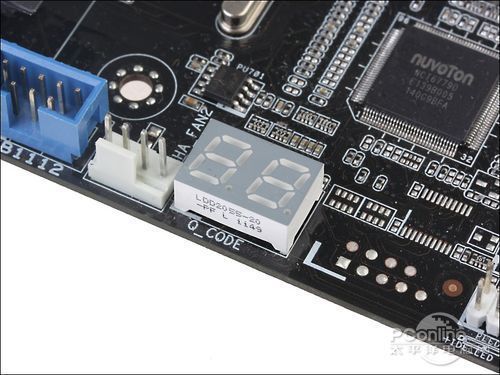 这款主板配备Q-Code指示灯,能够以代码形式快速指示当前平台的运行状况,方便用户配合说明书进行排错。
