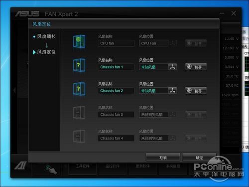 在风扇调校完毕后,软件就会收集到风扇的相关信息,但是有些信息还需要用户手动指定:风扇定位。