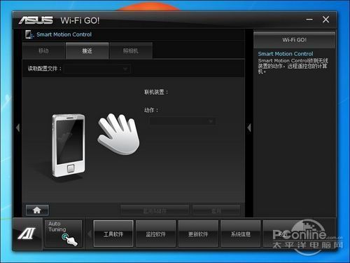 比如笔者就制作了一个小程序,会模拟键盘操作,暂停当前歌曲播放,然后将其关联到这软件的接近传感器,然后笔者打开音响大声放音乐,当笔者拿起电话放到 脸边打电话时,PC就会暂停当前歌曲播放,不会影响到打电话,非常方便。实际上,华硕在软件里已经内置了不少动作功能,感兴趣的玩家不妨想想还能有什么有 趣而实用的玩法。