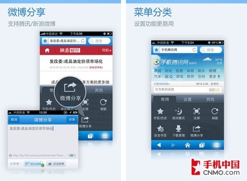 2、新增腾讯和新浪微博分享,浏览内容实时转发,会分享才快乐;