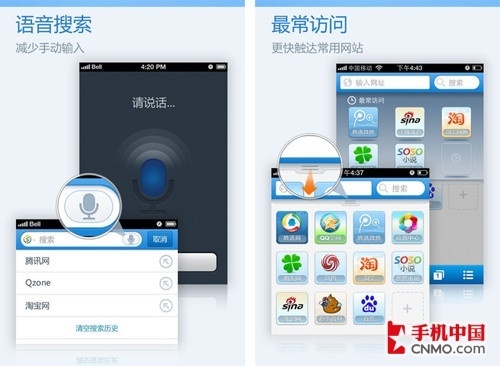 手机QQ浏览器iPhone版在本周更新了3.2版,更新后的QQ浏览器支持了语音功能,成为了第一个能听懂中文的iOS浏览器。