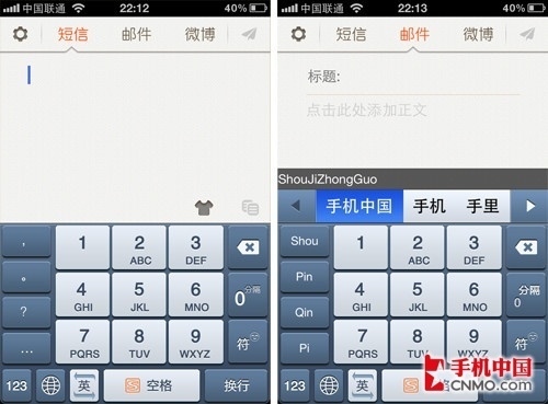 搜狗输入板保留了越狱版输入法的布局,用起来比较顺手,但输入板仅仅解决了输入问题,查看、回复操作还很成问题,所以使用起来并不方便,相比之下,如果搜狗输入板可以集成第三方短信软件、邮件软件和微博软件中,会更加好用。