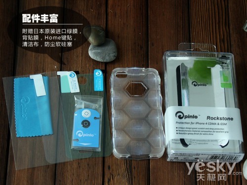 保护套附送的配件也十分丰富,有屏幕保护贴、Home键保护贴、屏幕清洁布以及日本顶级的AR三层式绿膜屏幕保护贴。绿膜是目前世界上最顶级的屏幕保护贴,具有很强的抗摩擦与耐刮性,透光率达到95%以上。
