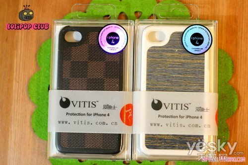 Vitis 炫彩蓝金 黑色方格防滑皮 iPhone4/4S保护套包装盒采用了硬塑料的材质,可以有效的防止保护套被挤压。附送的配件有原装高透屏幕贴膜*1、原装轻柔屏幕擦布*1。