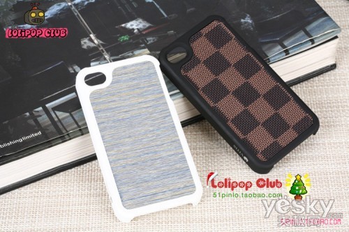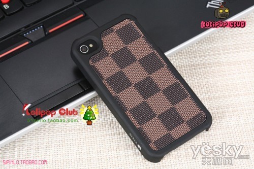 图为:Vitis 炫彩蓝金 黑色方格防滑皮 iPhone4/4S 保护套