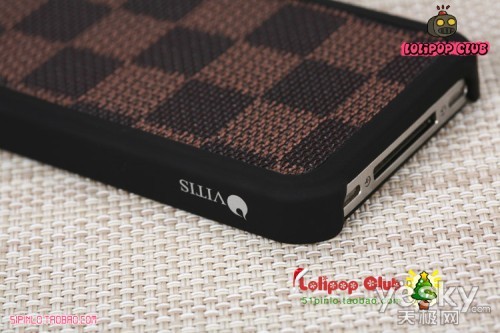 6、 Vitis 炫彩蓝金 黑色方格防滑皮 iPhone4/4S保护套 时尚简约风