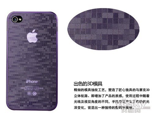 这款GGMM iPhone4S保护套有紫色、黑色、红色和宝蓝色可选,四种颜色各具风味。喜爱马赛克的果粉可以试试。