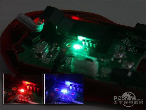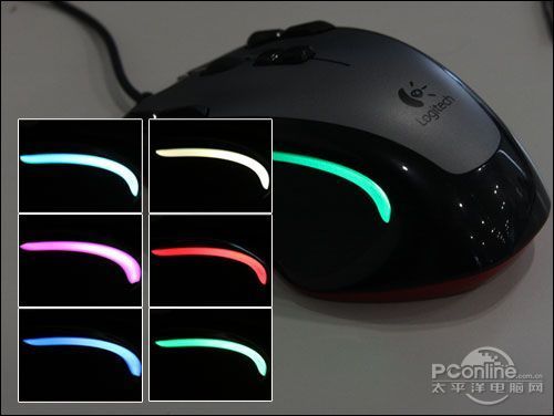 罗技 G300游戏鼠标同时也拥有整个罗技G系列鼠标都没有的彩灯,在崇尚视觉冲击的今天,罗技随 主流加入三色彩灯也是意料中事,配合“罗技游戏软件”更能能获得八种颜色。