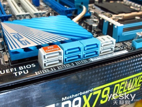 华硕 P9X79 Deluxe板载4个SATA 6Gb/s接口、4个SATA 3Gb/s接口和2个Power eSATA 6Gb/s接口。同时,华硕固态硬盘缓存加速技术也可以帮助玩家提高磁盘的性能。