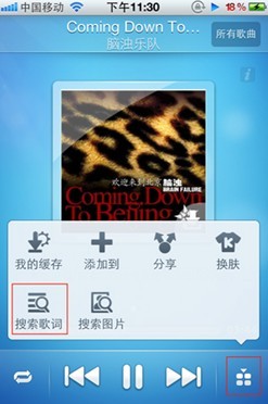 图5、功能菜单内的搜索歌词功能
