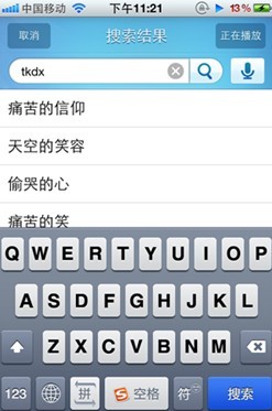 图1、酷我音乐2012 for iPhone正在播放场景