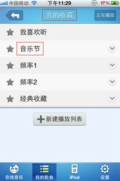图2、音乐云同步“我的收藏”列表