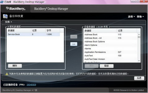 1.导入SB使黑莓收发邮件(前提SB中须包含E-Mail条目否则还是不可用,下载前请认真阅读是否包含)