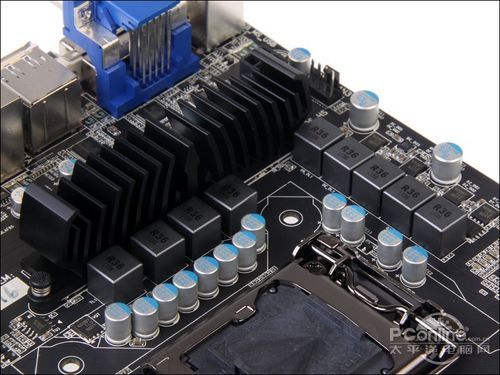 虽然这款板子采用了Micro-ATX小板设计,但是供电部分一点不缩减,配备多达9相供电,采用的都是优质的日本化工固态电容、R36封闭电感和高效的3低抗阻MOSFET,运作高效低发热,而且还配备美观的散热片保证散热效果。