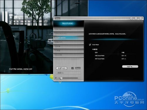 同样的,这款创新声卡的THX环绕音效和ScoutMode细节增强在孤岛危机2中的表现也不错,尤其是THX的环绕优化很明显,而ScoutMode也不错,可以让机械虫子的移动和外星人的移动声音更明显。