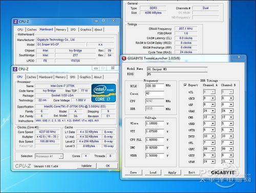 技嘉为旗下的Z77提供了一款叫TweakLauncher的软件,可以方便用户在操作系统下直接调节CPU外频倍频等参数,实现实时超频,经实测,我们的的确能够用这软件把CPU超频到4.2GHz。