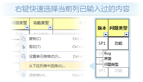 WPS表格中, 右键菜单增加“从下拉列表中选择”选项,可以右键快速选择当前列中已输入过的内容。