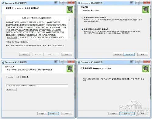 印象笔记的安装简单,下一步策略就可以安装完毕,从安装中我们可以看到,印象笔记的名称没有在安装过程中被使用,而是依旧称为了Evernote。