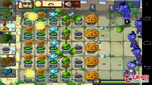 植物大战僵尸长城版算是一个新瓶装旧酒的游戏,长城版虽然增加了很多新游戏要素,但由于画面过于粗糙,实在让人提不起胃口,对于手机屏幕较小的 用户还好,但对于720p级别的屏幕而言,这样的画面确实太粗糙了。其实植物大战僵尸有针对高清屏幕的版本,但长城版并不包含。至于新加入的中国要素呢? 中国元素仅仅体现在僵尸的外型上,玩法并没有太大创新,很遗憾没有增加中国特色植物。