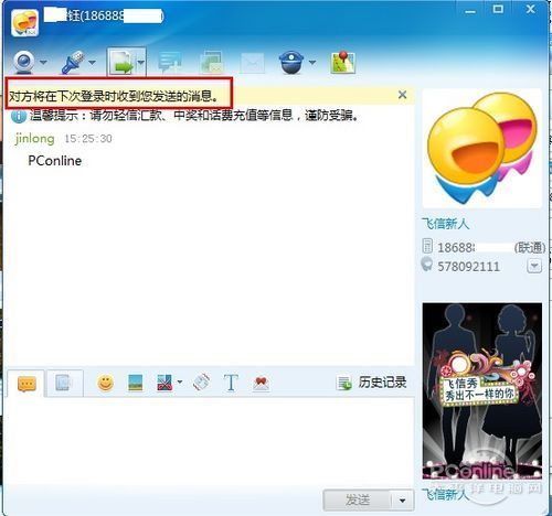 飞信晨曦版在人性化设计方面还是挺为用户着想的,起码让用惯QQ的用户不用练习就懂得使用飞信。接下来简单列举一些人性化的提示弹窗。