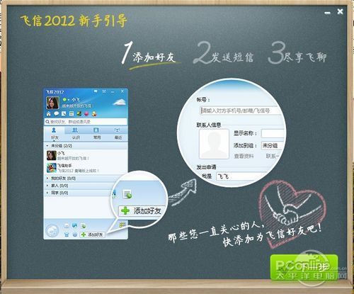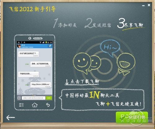 对于新手,飞信有特别的新手引导,会在第一次安装的时候提示你怎么去尽情使用飞信。