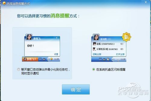 飞信的消息提醒方式有两种方式。喜欢像QQ一样闪来闪去还是直接最小化到任务栏的方式,由你喜欢。