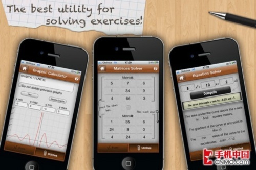 iMathematics!是iPhone上一款功能肥强强大的综合型计算器,在iMathematics!上一共出现了超过700个计算公 式,包括了八种计算器,还有图形计算器、分数计算器、二次方程求解等等,功能可以说是非常强大,学生朋友们做完题,可以用这个计算器验算一下结果。同时这 个计算器也有许多直观的设计,使用图形计算器可以直接生成二维图。