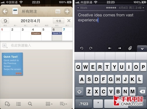 乐顺备忘录界面友好、直观,同时在同步方面也做得比较出色,可以和Evernote进行同步,这样的功能免去了我们重复操作的烦恼,不过这个备 忘录也有个较大的缺点,仅支持iPhone手机,而iPhone对于学生来说还算是比较奢侈的,如果要能推出Android版,乐顺备忘录的普及率可能会 更高。
