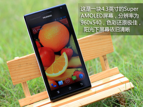 在屏幕配置方面,华为P1拥有一块可视面积为4.3英寸Super AMOLED屏幕,分辨率达到了qHD规格,具有画质细腻、色彩艳丽、可视角度大、节能等多重优势,可以为用户欣赏照片、视频以及游戏提供良好的显示效果。