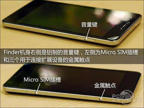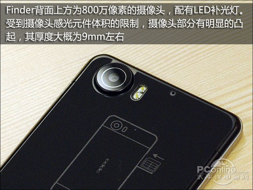 在细节设计方面, OPPO Finder没有采用一体化造型设计,对于一款超薄智能手机来说有些让人感到意外。除了支持Micro SIM卡以外,OPPO Finder还采用了不可更换电池的设计,原装电池容量为1530毫安,一般应用情况下的待机时间在1天左右。考虑到超薄的造型,这样的续航表现还是可以让人接受的。