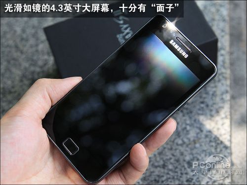 向来注重屏幕显示效果的三星自然不会放过I9100这个展示平台,一块可视面积为4.3英寸的Super AMOLED屏幕摒弃了传统蜂窝状像素排布,对文字等信息的显示效果比较理想,颗粒感不十分明显。尽管800x480像素的WVGA级别分辨率并不给力,却依然为我们展现了鲜活的色彩表现力。