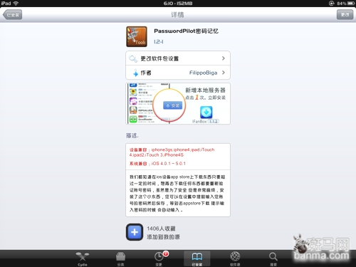 我们都知道在ios设备app store上下载东西只要超过一定的时间,想再去下载任何东西都要重新验证账号密码,虽然是为了安全 但是非常麻烦,安装了这个小东西,您可以在设置中提前输入您账号的密码然后保存,等到去appstore下载 提示输入密码的时候 会自动输入。
