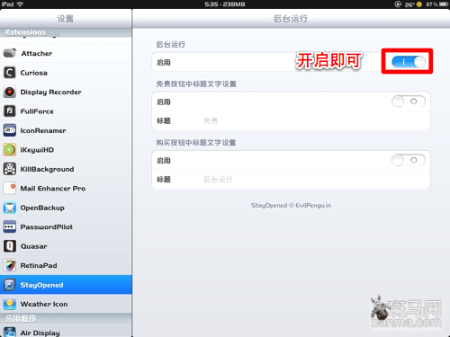 然后进入桌面上的设置,找到StayOpened;开启后台运行即可!