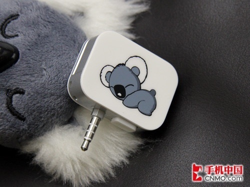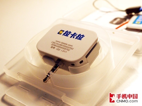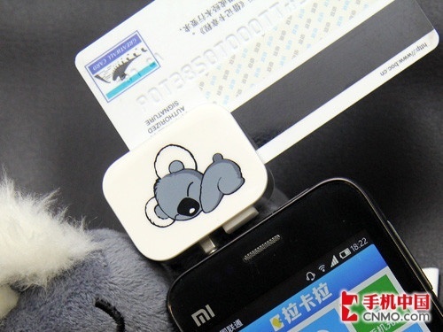 这款设备是通过3.5mm的耳机插头来与手机进行数据传输,使用时需要将插头插入到手机耳机插孔中,如果你的手机没有3.5mm耳机插孔,那非常抱歉,不能使用本刷卡器。刷卡器的正反两面分别印有拉卡拉的LOGO以及可爱的灰色考拉。