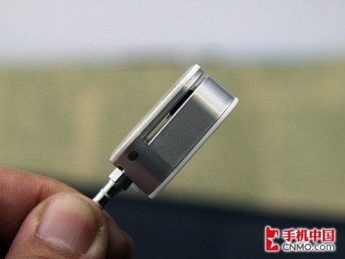 在刷卡器的顶端及左右两侧可以明显的看到一条缝隙,这就是刷卡时需要定向划过的卡槽了,透过这条缝隙我们可以看到一块阴影区域,那是刷卡时读取卡片内信息的磁头。