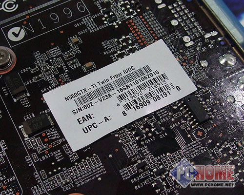 PCB设计方面,依然采用越肩式PCB(Super PCB)设计,重新布局了PCB的原件摆位。杜绝了原件挡件的问题,另外,还新增了电压测量点以及OTP开关、状态检测灯等人性化的玩家功能。用料方面, 相比旧版GTX560Ti 至尊版,此次新版使用了更加先进的用料。采用了电气性能更强的IR Dr.Mos管,PCB整体布局非常整齐,舒服。另外,采用了索泰全新定制的AIO一体化电感,除了优化散热外形外,还拥有超大感值,散热与性能同时兼 顾。电容方面,为了配合PCB整体的色调,同样是采用了日系的黑色定制电容,这让张卡设计更加美观。