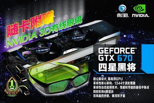 虽然暗黑3还是2D半的画面,但是如果能在购买GTX670时为其他3D游戏准备一副3D眼镜就更好了。如今卖场上已经最吸引眼球的还是影驰的GTX670四星黑将,免费赠送价值799元的3D眼镜。着实的福利啊!有兴趣的一起来了解下。