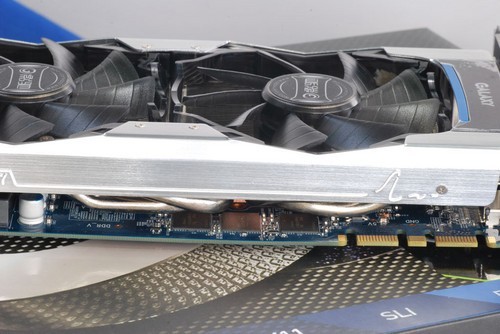 影驰GTX670四星黑将采用了银河双子星散热技术。该散热由大面积铜制底部、4根特别加工的无压缩超高效热管组 成。银河双子星还采用了大量大面积散热铝片加上双9CM高效风扇进行散热。完全满足GTX670满载以及Dynamic Clocking的发热需求。而其银河双子星的LOGO上还采用Led设计,晚上更显个性。